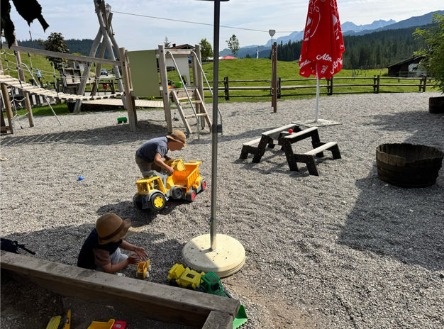 Die Almen sind nicht nur kinderfreundlich, sondern auch schnell und leicht direkt vom Parkplatz aus zu erreichen. Eine Alm hat einen Spielplatz, 300m weiter findet ihr eine weitere Alm mit einem kleinen Indoor Zimmer für Kinder. Bei beiden Almen haben wir gegessen & die Kinder konnten wunderbar nebenher spielen.